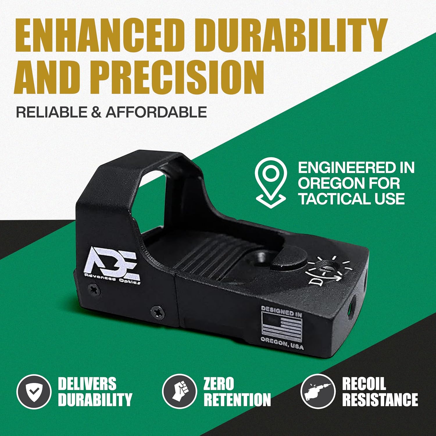 The Ade Advanced Optics RD3-006 Reflex Sight for Handgun is a small red/green/blue-dot reflex optic designed for pistols, shotguns, airsoft platforms, and small rifles that accept common micro red dot system footprints. You’ll find it especially useful if you want a low-profile optic that adapts to popular plate standards like Vortex Venom and Burris Fastfire.