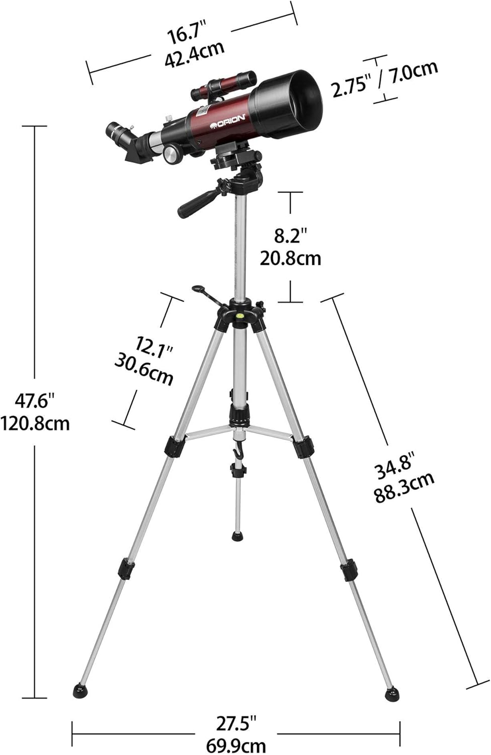 | Orion GoScope III 70mm Refractor Telescope | The main attraction, with sufficient power for both lunar and terrestrial observation. |